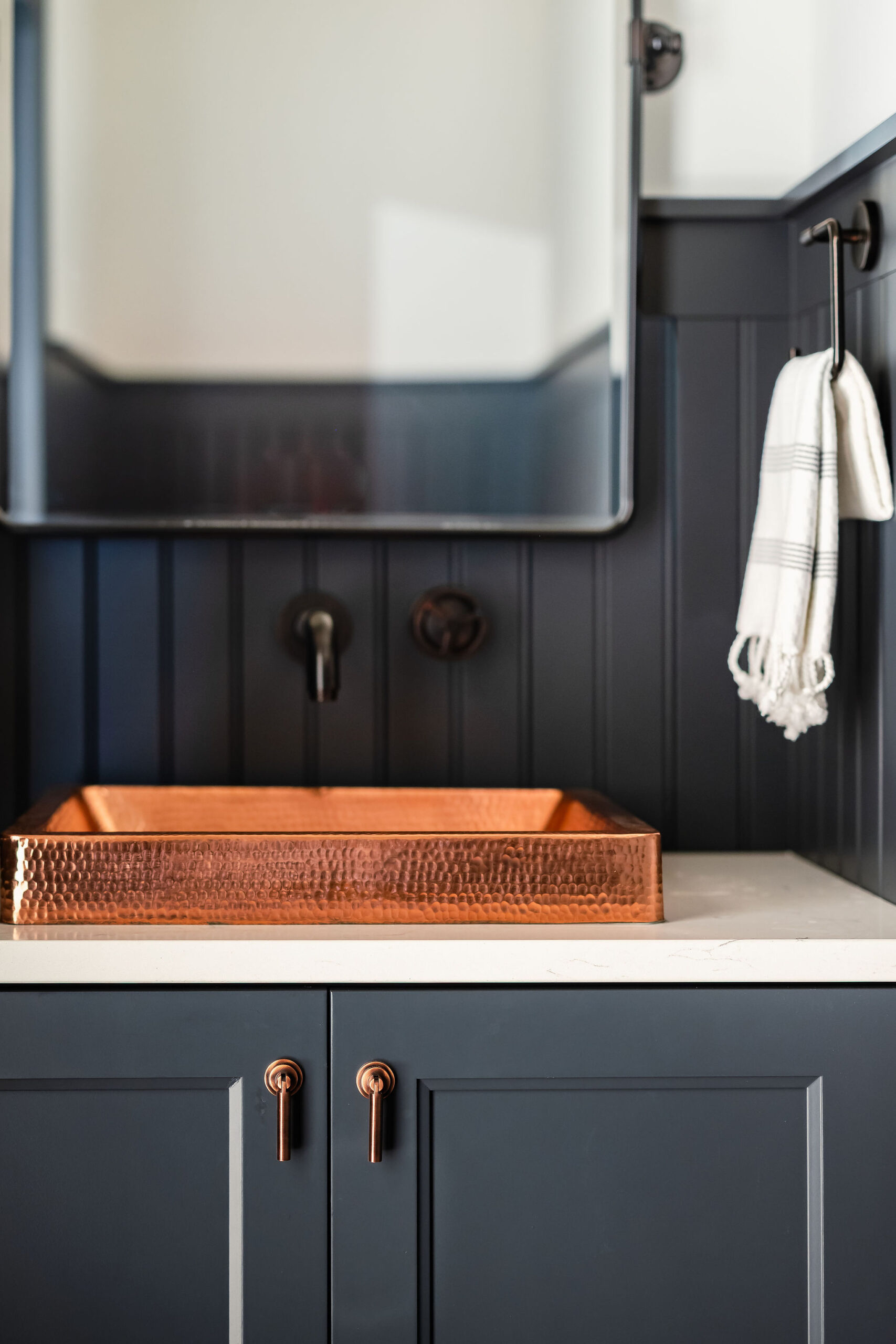 A fresh coat of paint can completely change the look of your vanity. Deep navy, muted green, or even a soft greige can give your space a designer feel. Don’t forget to use a quality paint and finish it off with a protective top coat if you’re painting it yourself.