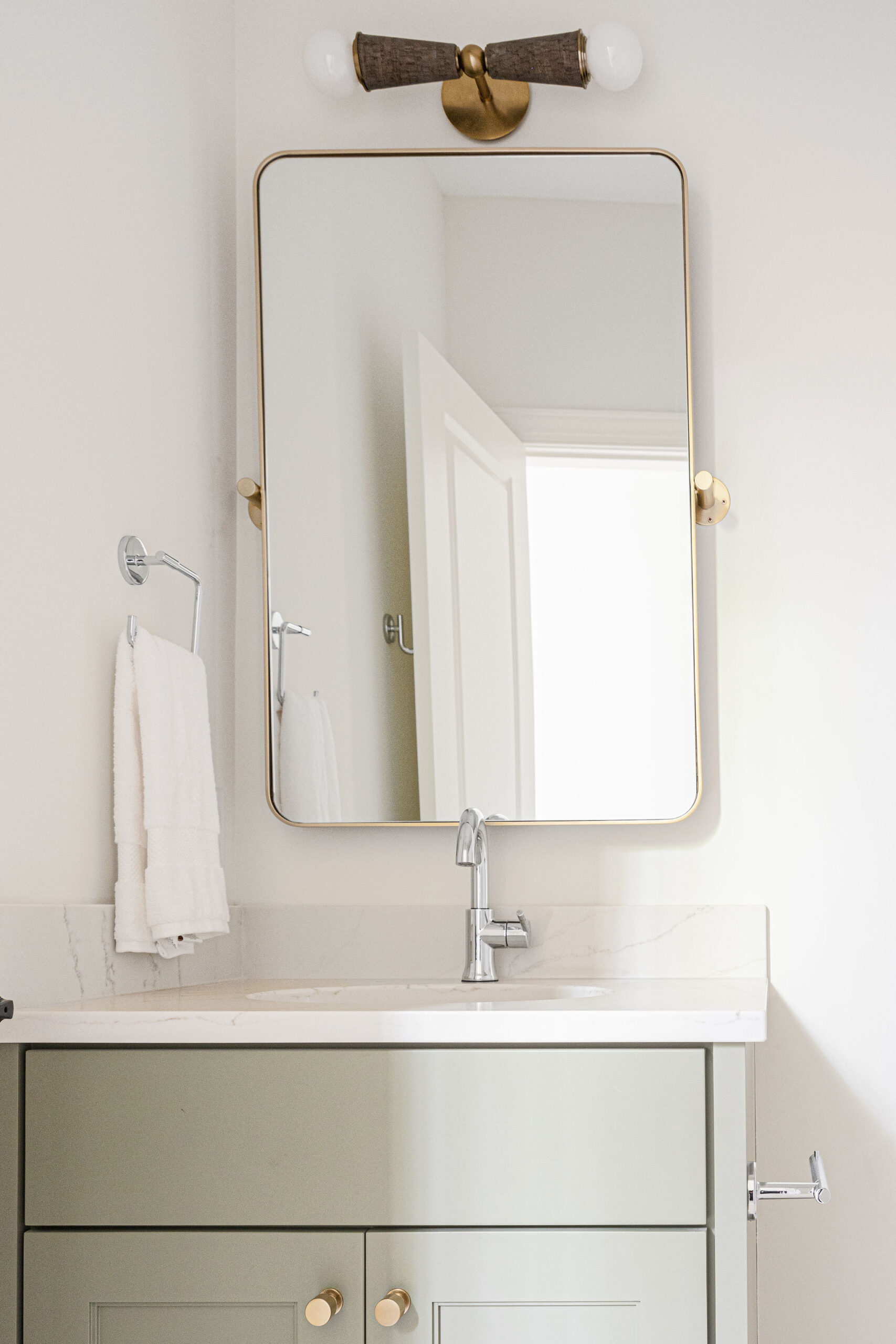 Even small swaps, like upgrading your toilet paper holder or towel hook, can make a big impact. Choose coordinating finishes and pay attention to placement — these tiny touches go a long way toward making the space feel intentional.