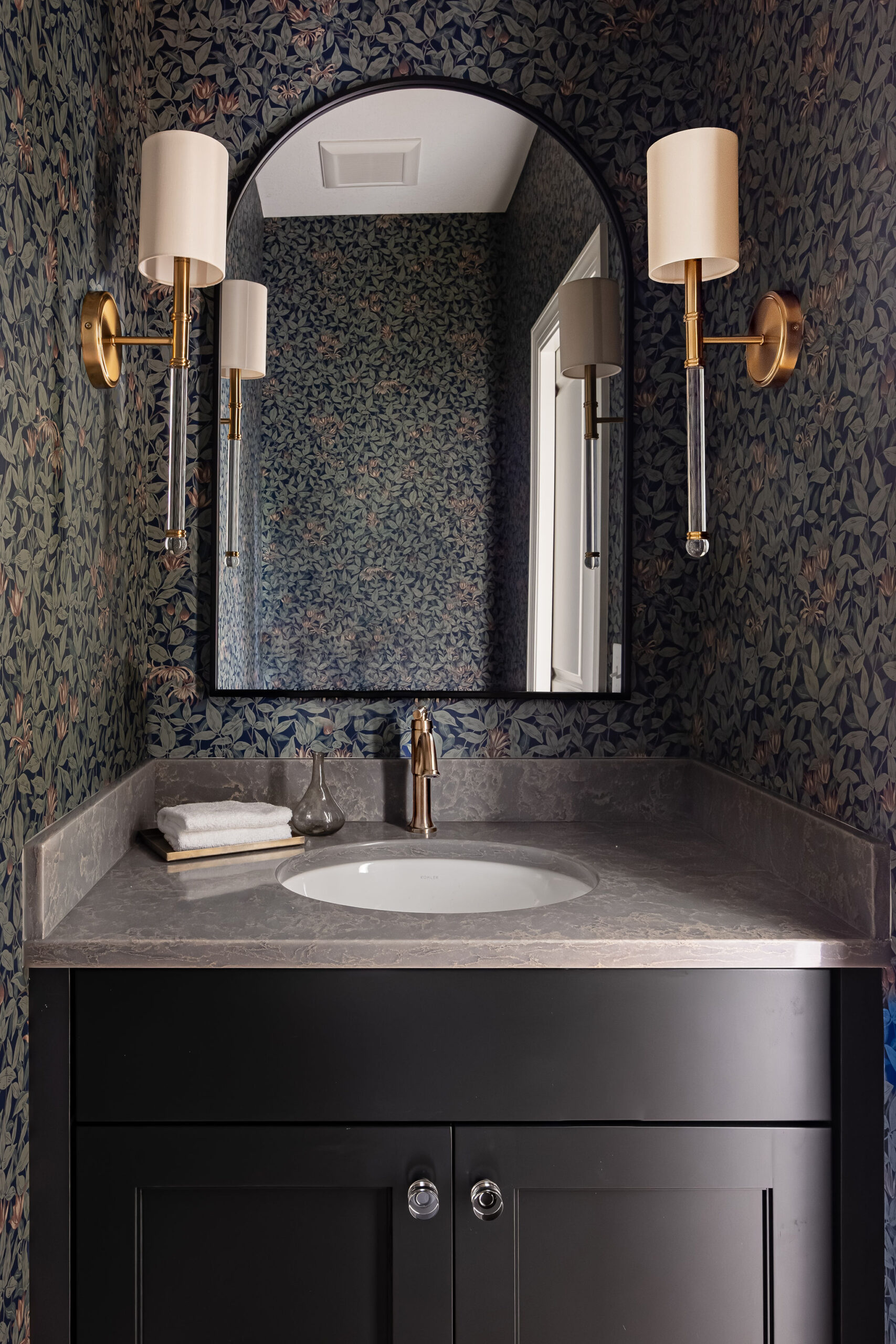 Whether you go with a moody paint color or statement wallpaper, the powder bath is the perfect place to take a design risk. Small spaces can handle big personality — so don’t be afraid to go bold! Wallpaper the whole room for drama, or just one accent wall if you want a lighter touch.