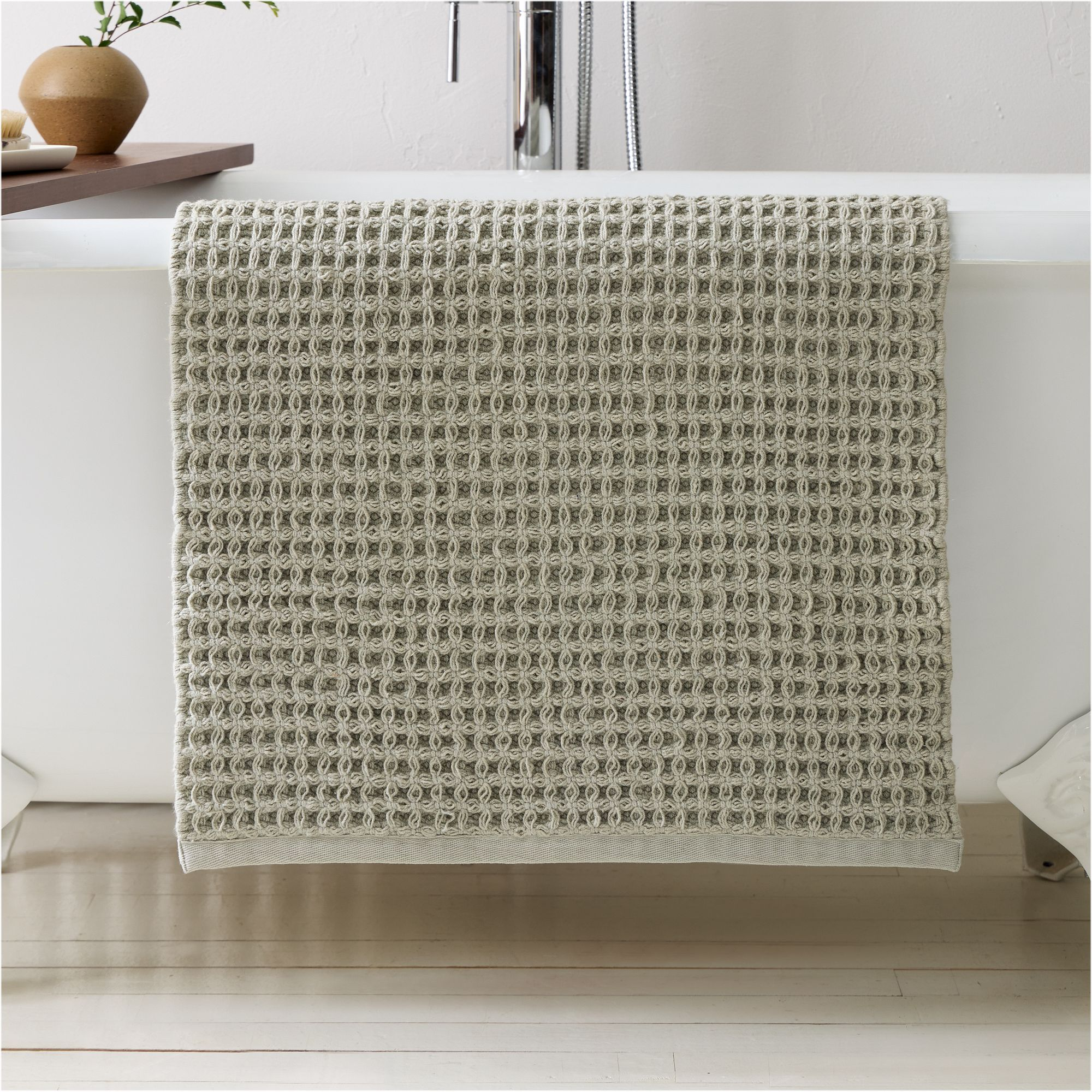 Once your main fixtures are updated, it’s time for the finishing touches — the part that makes it feel you. A cozy hand towel, a pretty rug, a framed piece of art, and a candle can pull the whole space together. Layer in texture and color for warmth and personality.