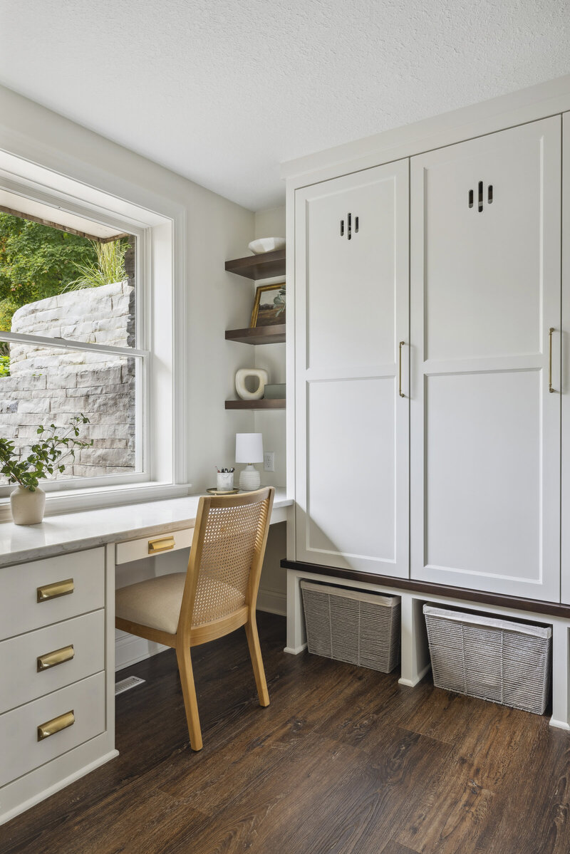 + The house originally had two separate staircases to the upper level, so we removed the secondary one to maximize space and turn it into a cozy living space.