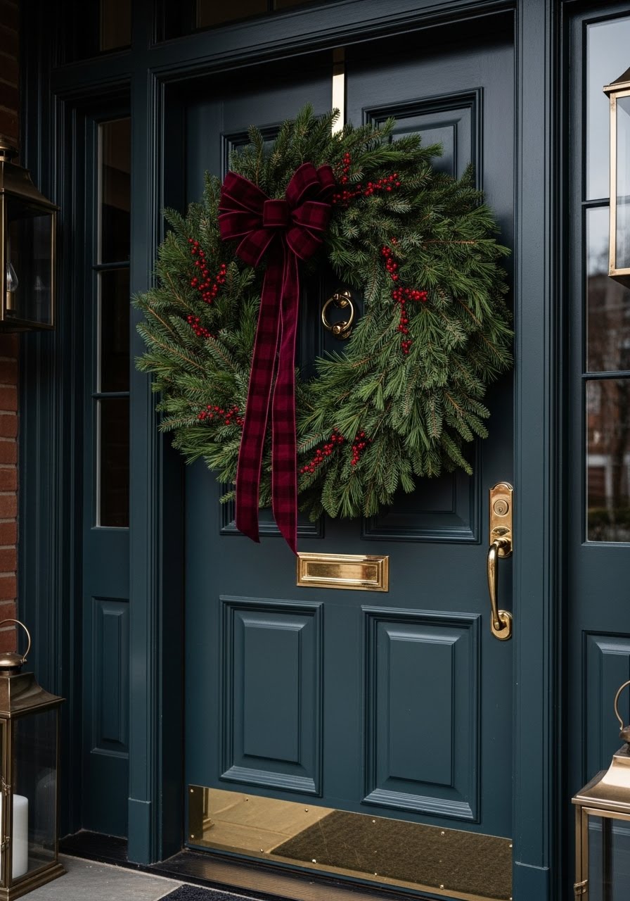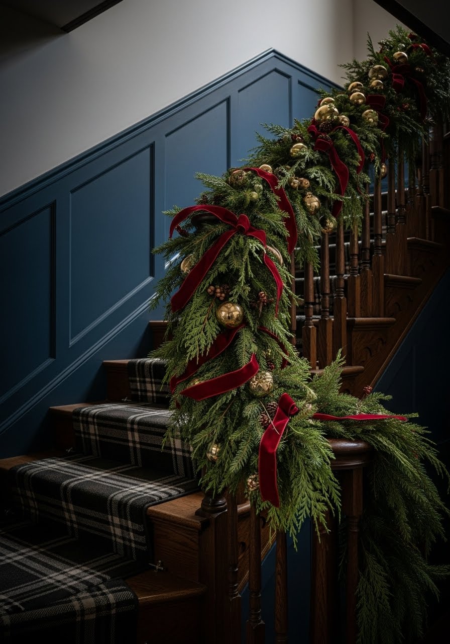 The “Ralph Lauren” look is something that feels straight out of a winter lodge, so think rich textures, deep hues, and a warm glow . This style leans into layered patterns like plaid and stripes, leather and velvet textures, and metallic accents that make your space feel both timeless and sophisticated. To add a touch of luxury mix in some brass bells, velvet ribbon bows, or coordinating gift wrap under the tree. It’s Christmas elegance with a heritage twist.