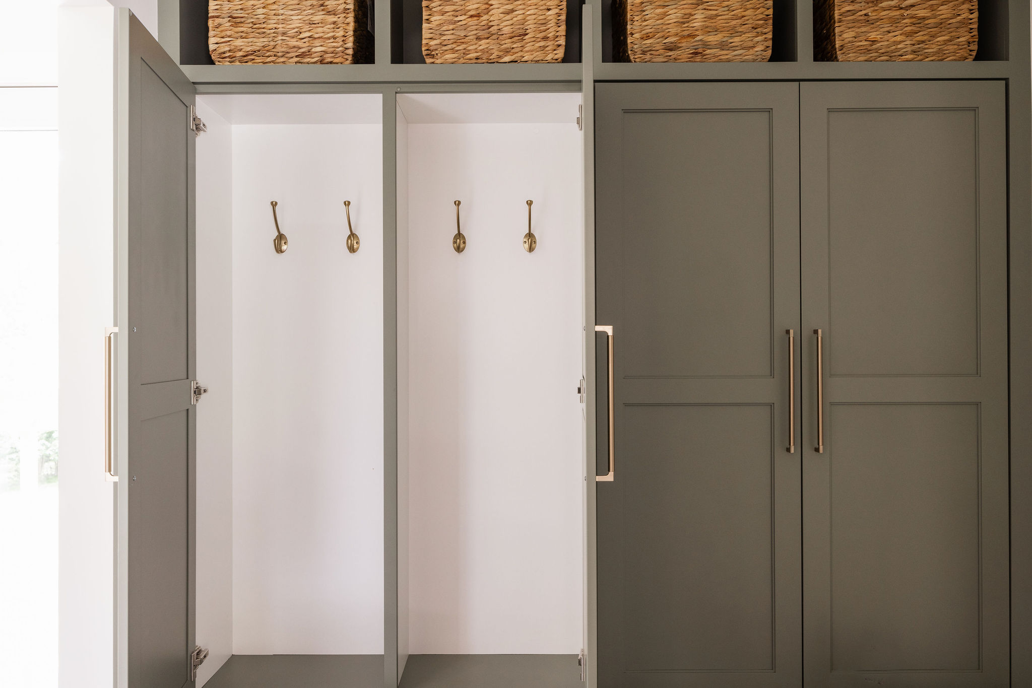 Some homeowners prefer open lockers, which make it easy to grab items quickly and keep things visible. Others prefer lockers with doors to hide clutter and create a cleaner look. Both styles can work well depending on the aesthetic and level of organization your family prefers.